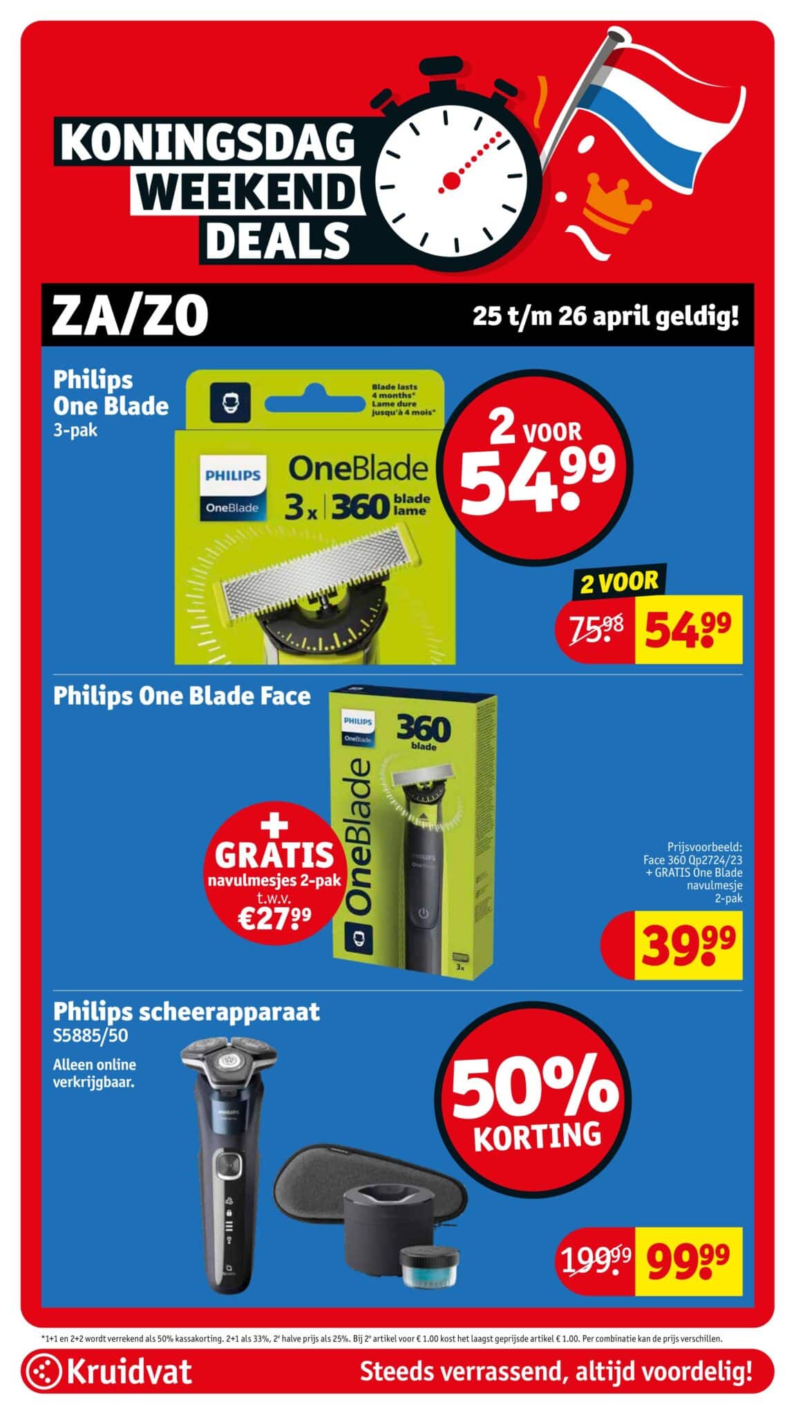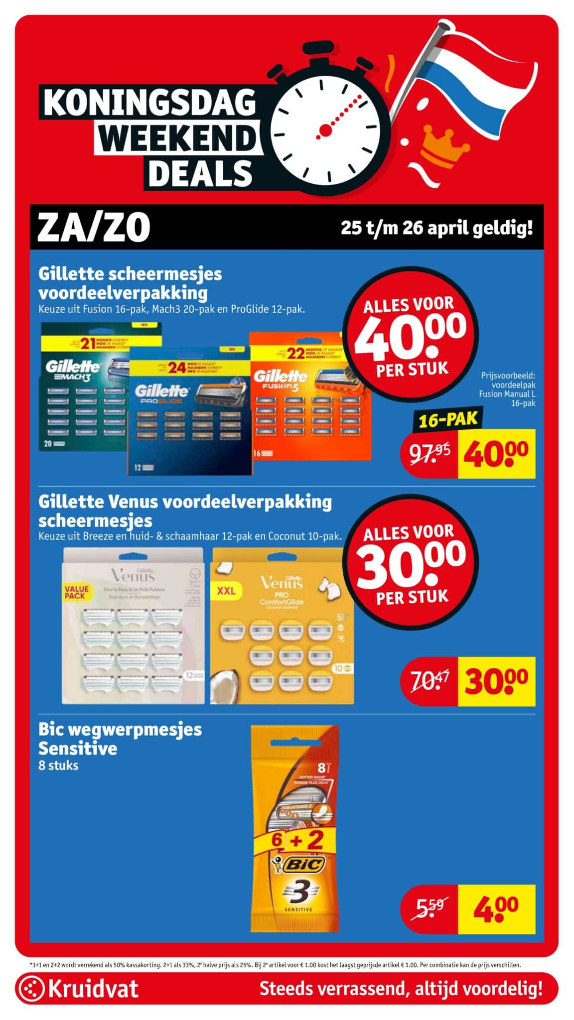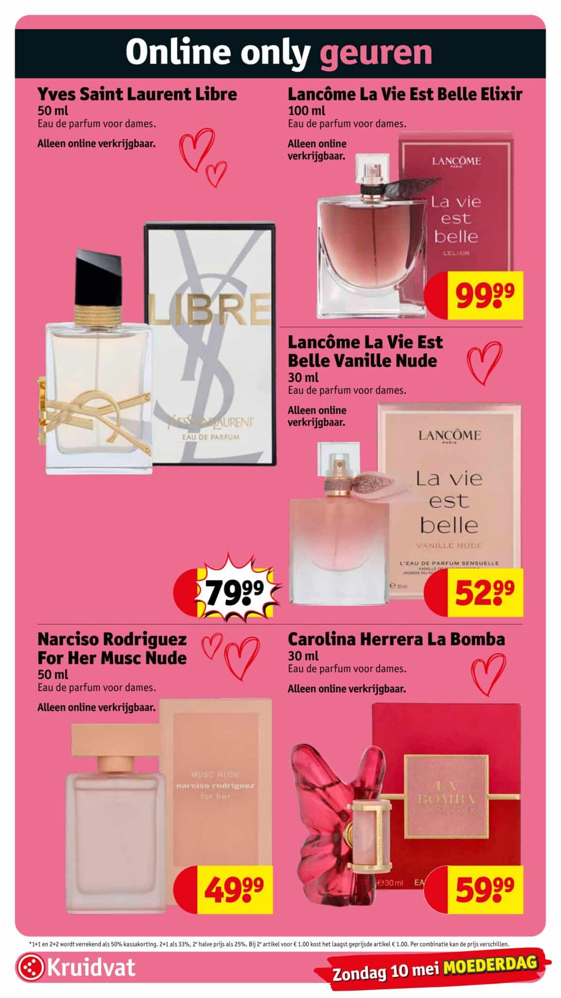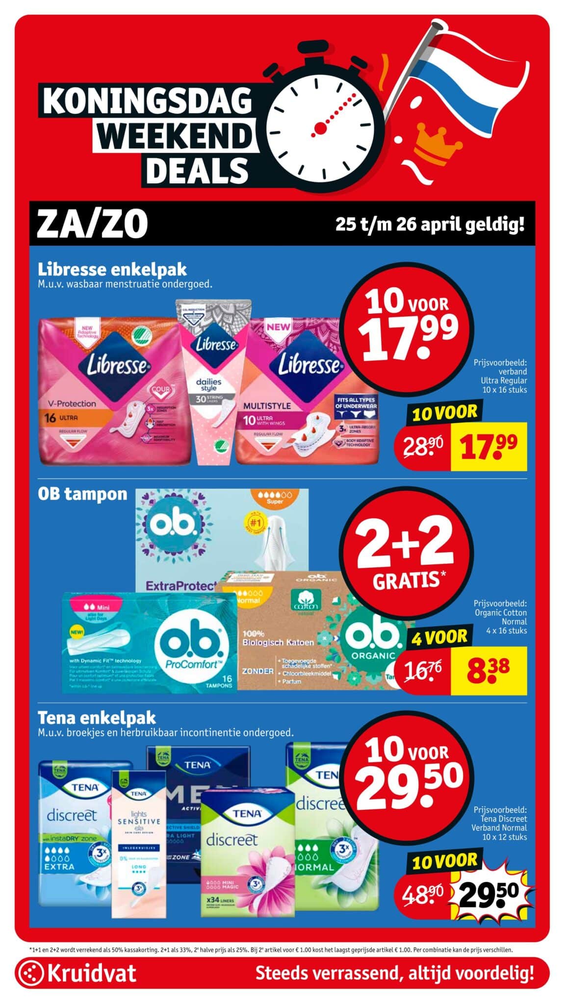 Kruidvat actuele folder geldig van 21.04 tot en met 26.04.2026. Bekijk alle acties en aanbiedingen van deze week in de online Kruidvat folder. In het Kruidvat koop je alles voor persoonlijke verzorging en schoonheid aan scherpe prijzen. Daarnaast is er ook een ruim assortiment aan andere nuttige huishoudproducten en entertainment zoals goedkope boeken en dvd’s. Bestel voor acht uur ‘s avonds en ontvang je bestelling de volgende dag.