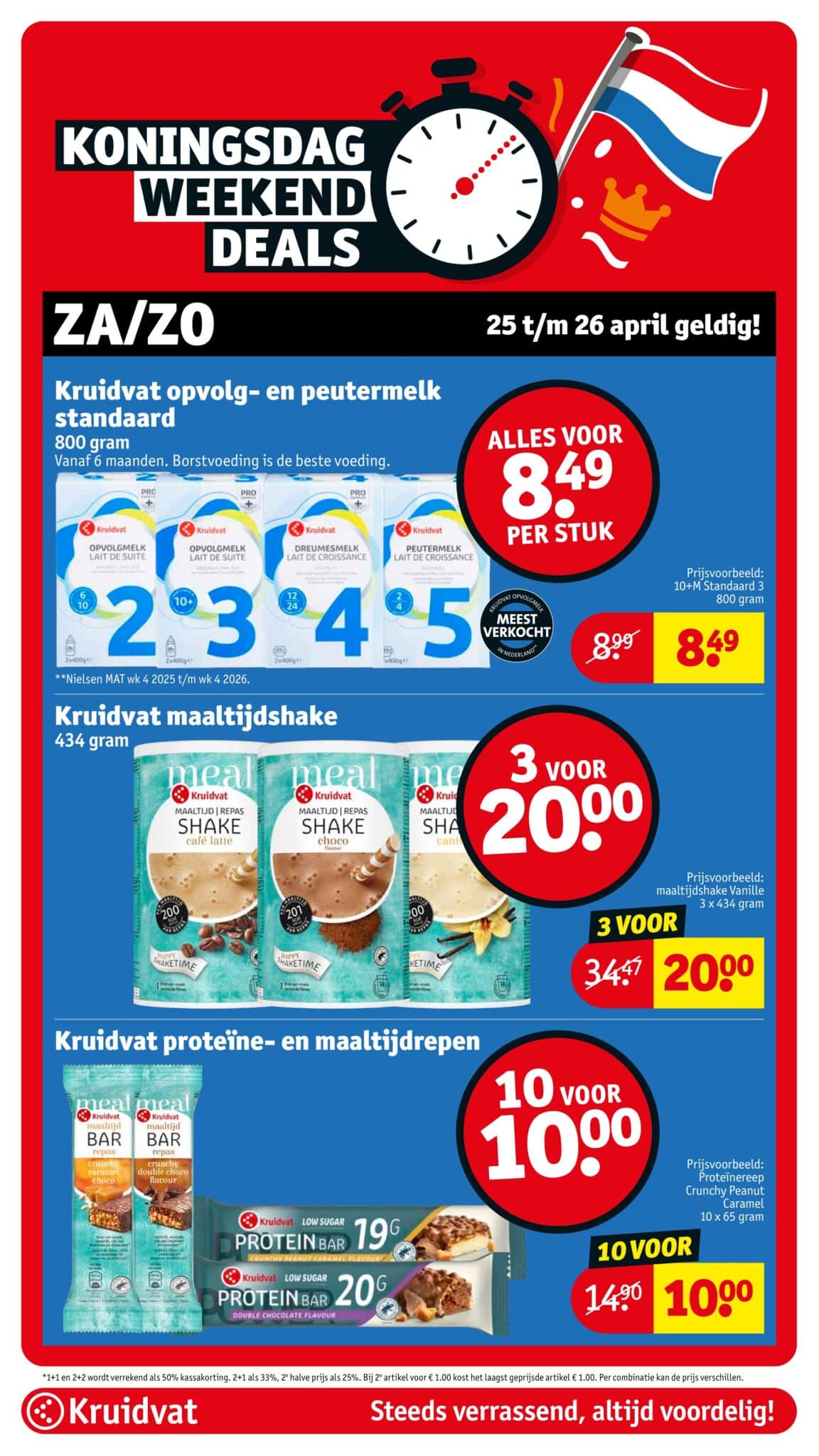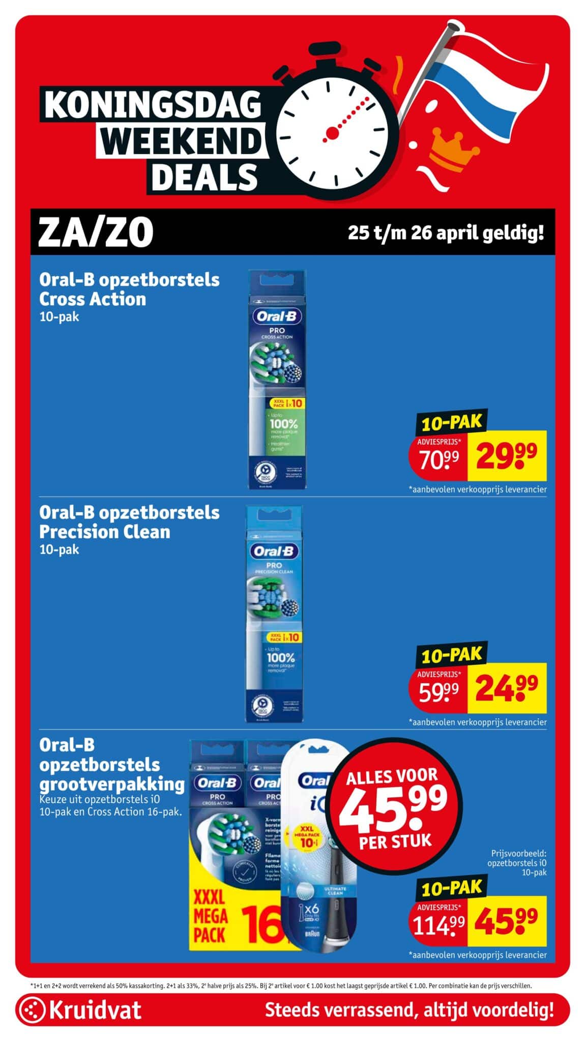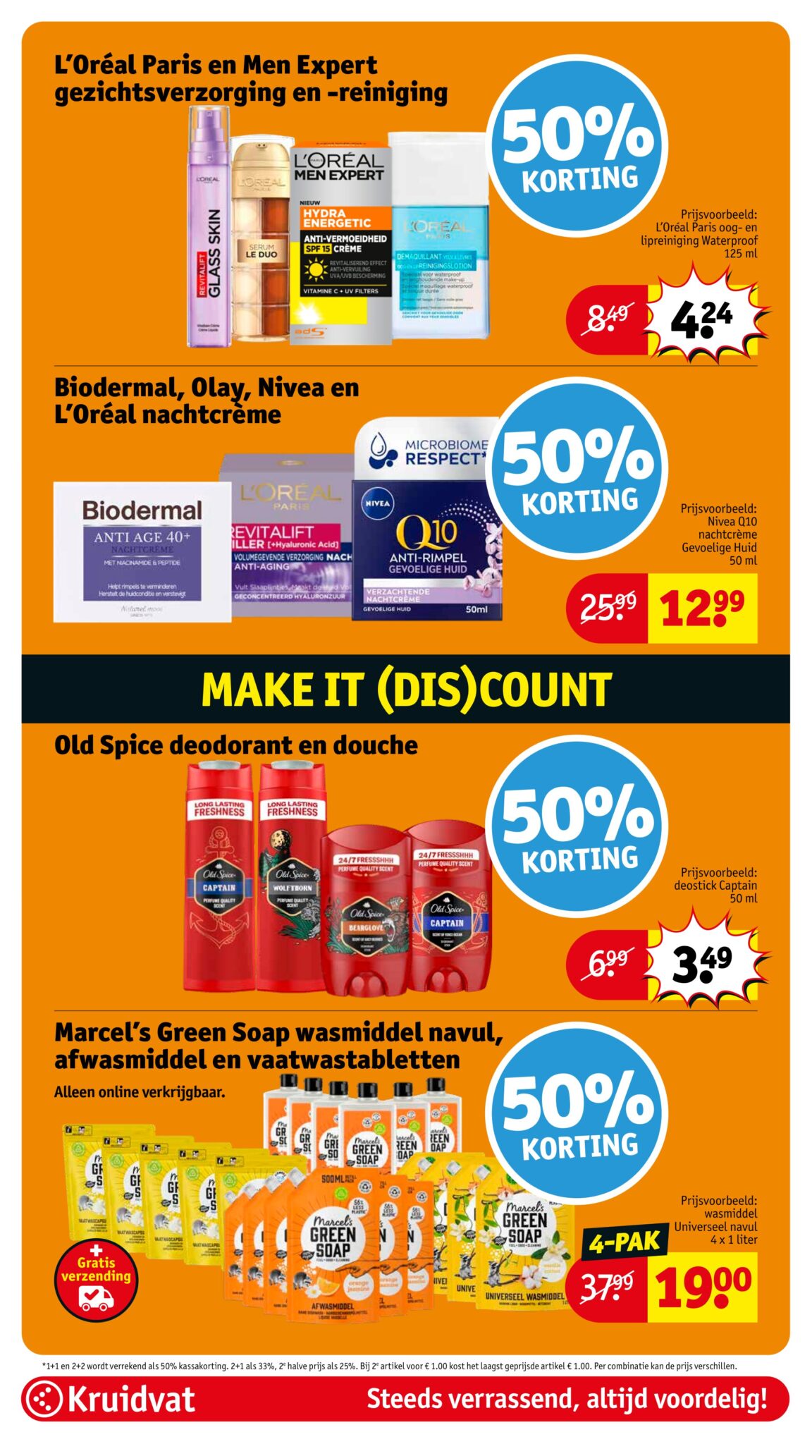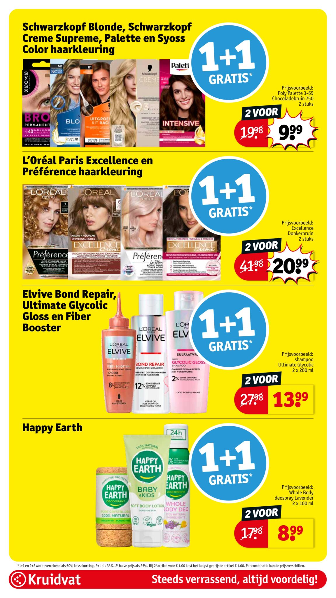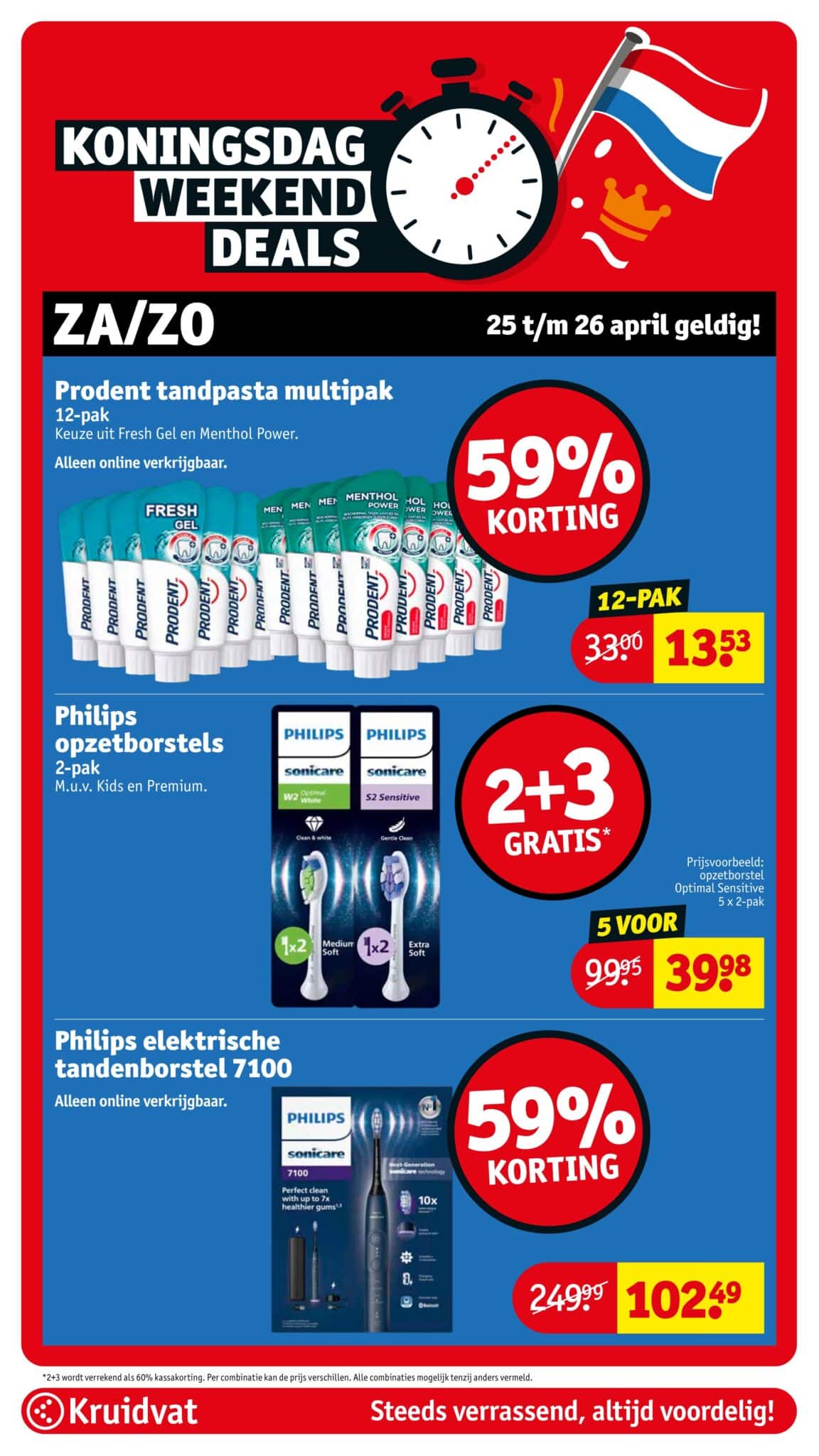 Kruidvat actuele folder geldig van 21.04 tot en met 26.04.2026. Bekijk alle acties en aanbiedingen van deze week in de online Kruidvat folder. In het Kruidvat koop je alles voor persoonlijke verzorging en schoonheid aan scherpe prijzen. Daarnaast is er ook een ruim assortiment aan andere nuttige huishoudproducten en entertainment zoals goedkope boeken en dvd’s. Bestel voor acht uur ‘s avonds en ontvang je bestelling de volgende dag.