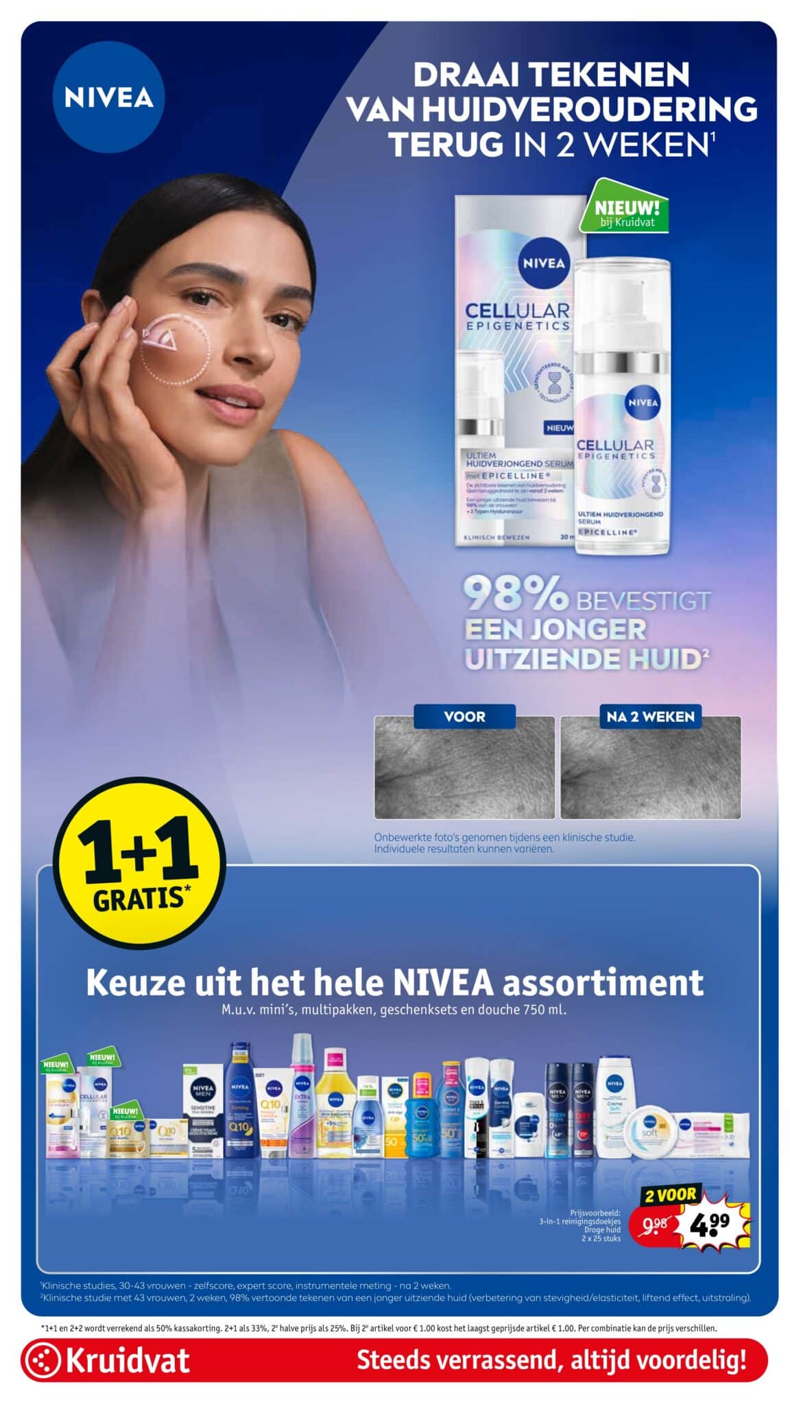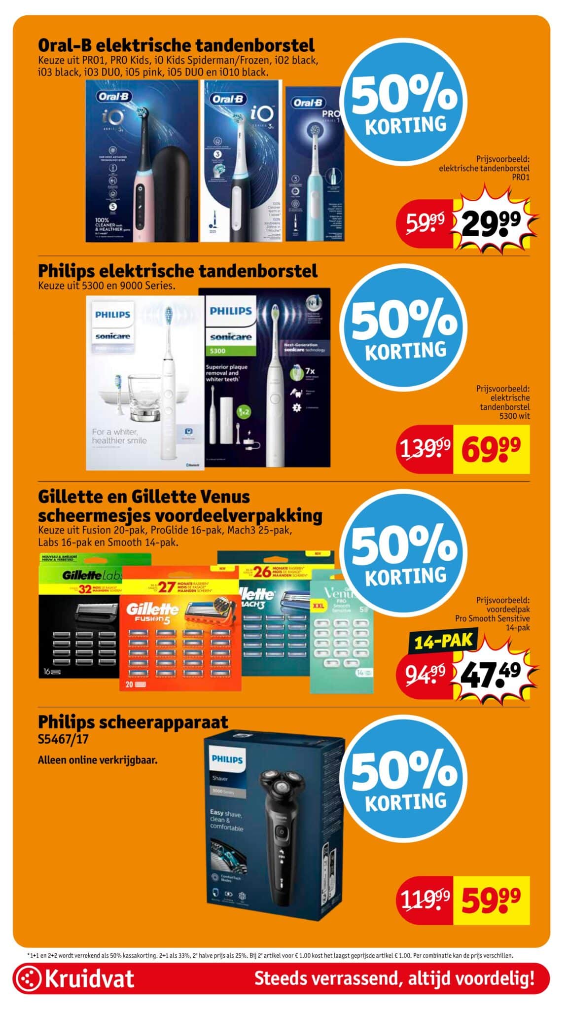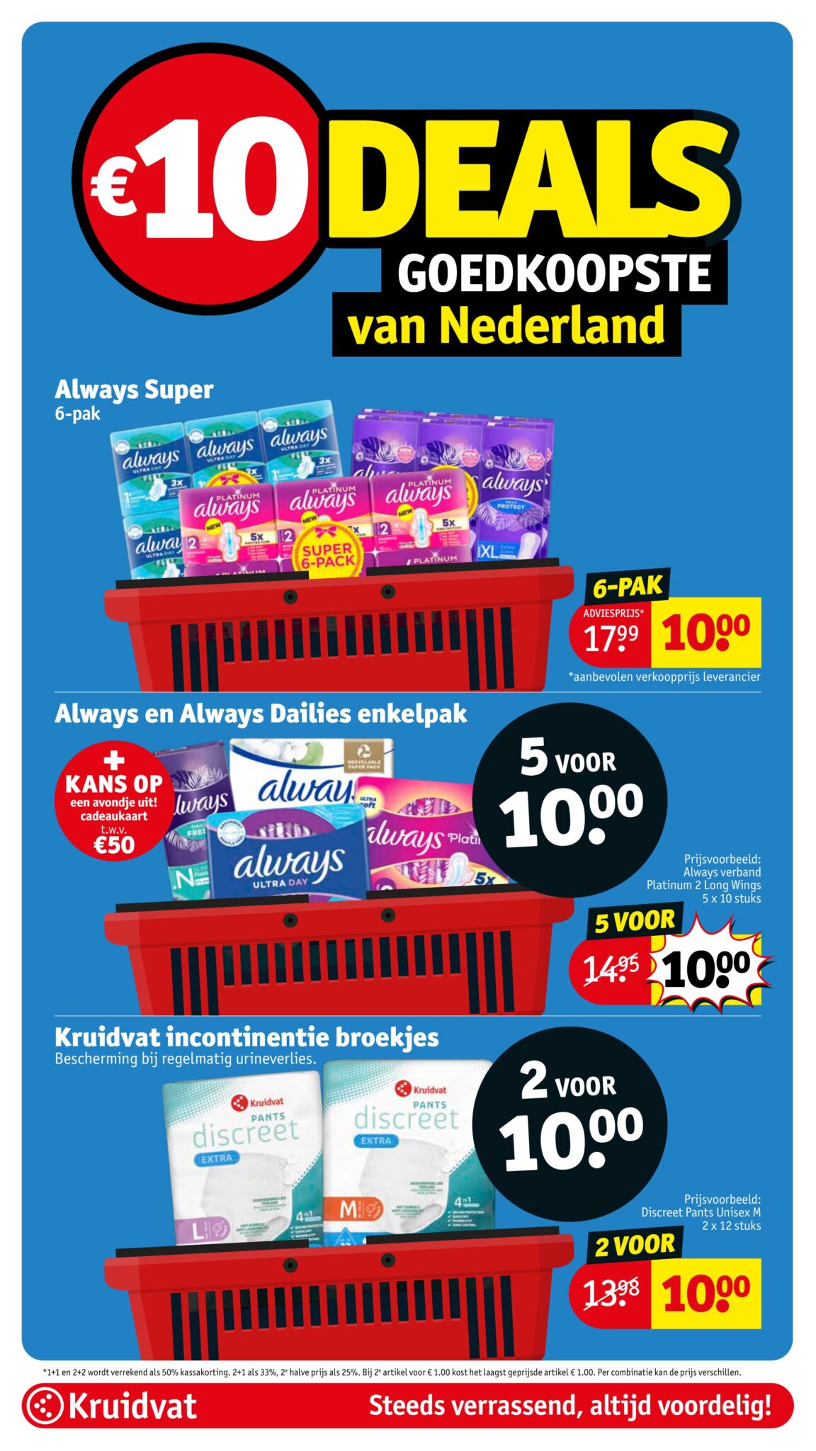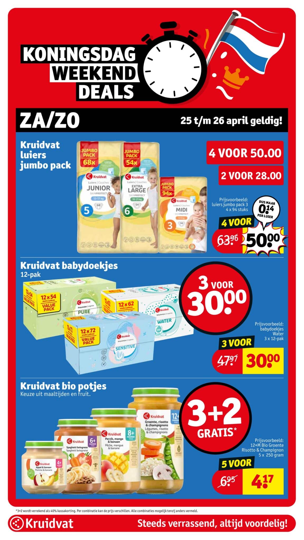 Kruidvat actuele folder geldig van 21.04 tot en met 26.04.2026. Bekijk alle acties en aanbiedingen van deze week in de online Kruidvat folder. In het Kruidvat koop je alles voor persoonlijke verzorging en schoonheid aan scherpe prijzen. Daarnaast is er ook een ruim assortiment aan andere nuttige huishoudproducten en entertainment zoals goedkope boeken en dvd’s. Bestel voor acht uur ‘s avonds en ontvang je bestelling de volgende dag.