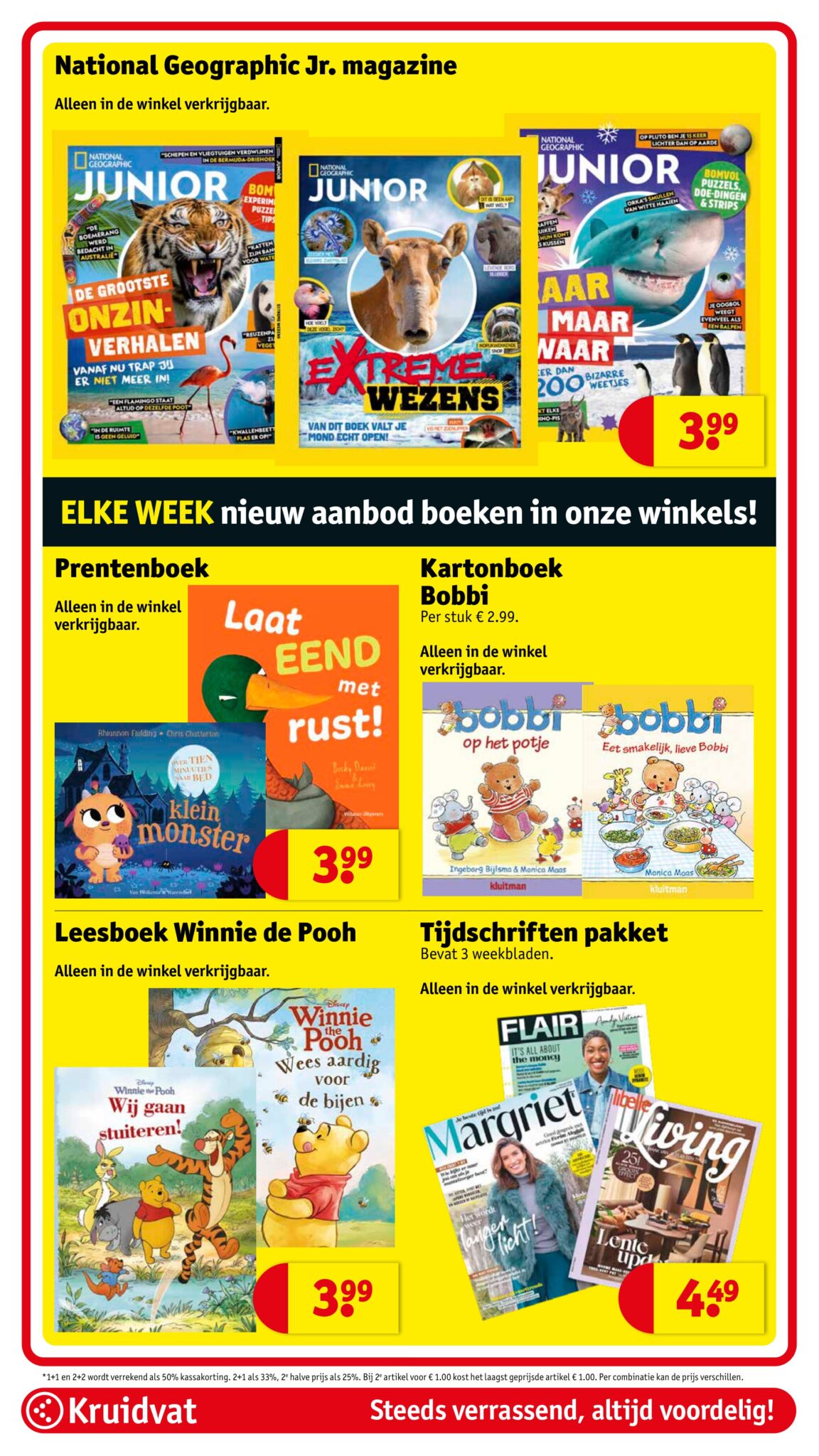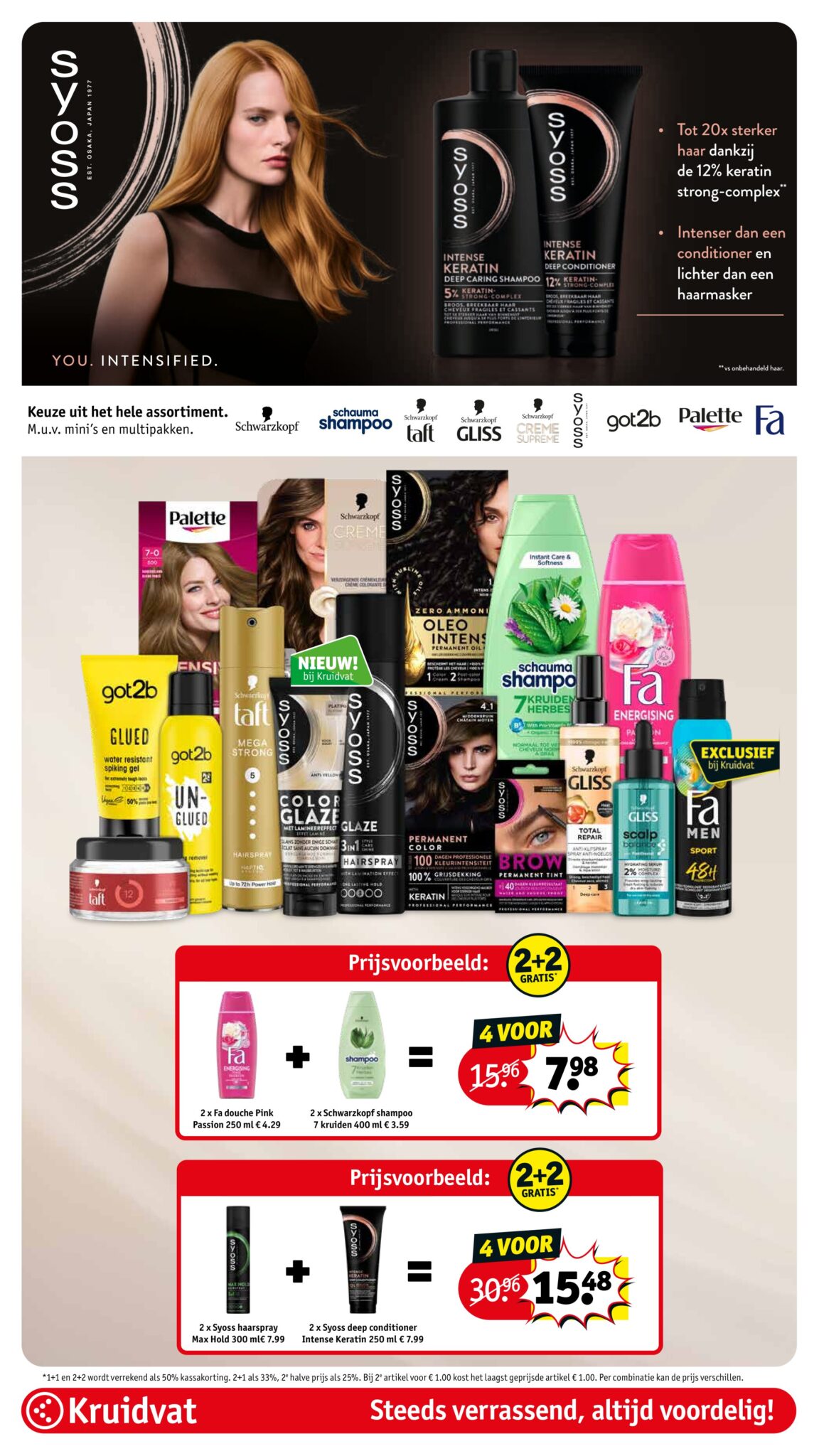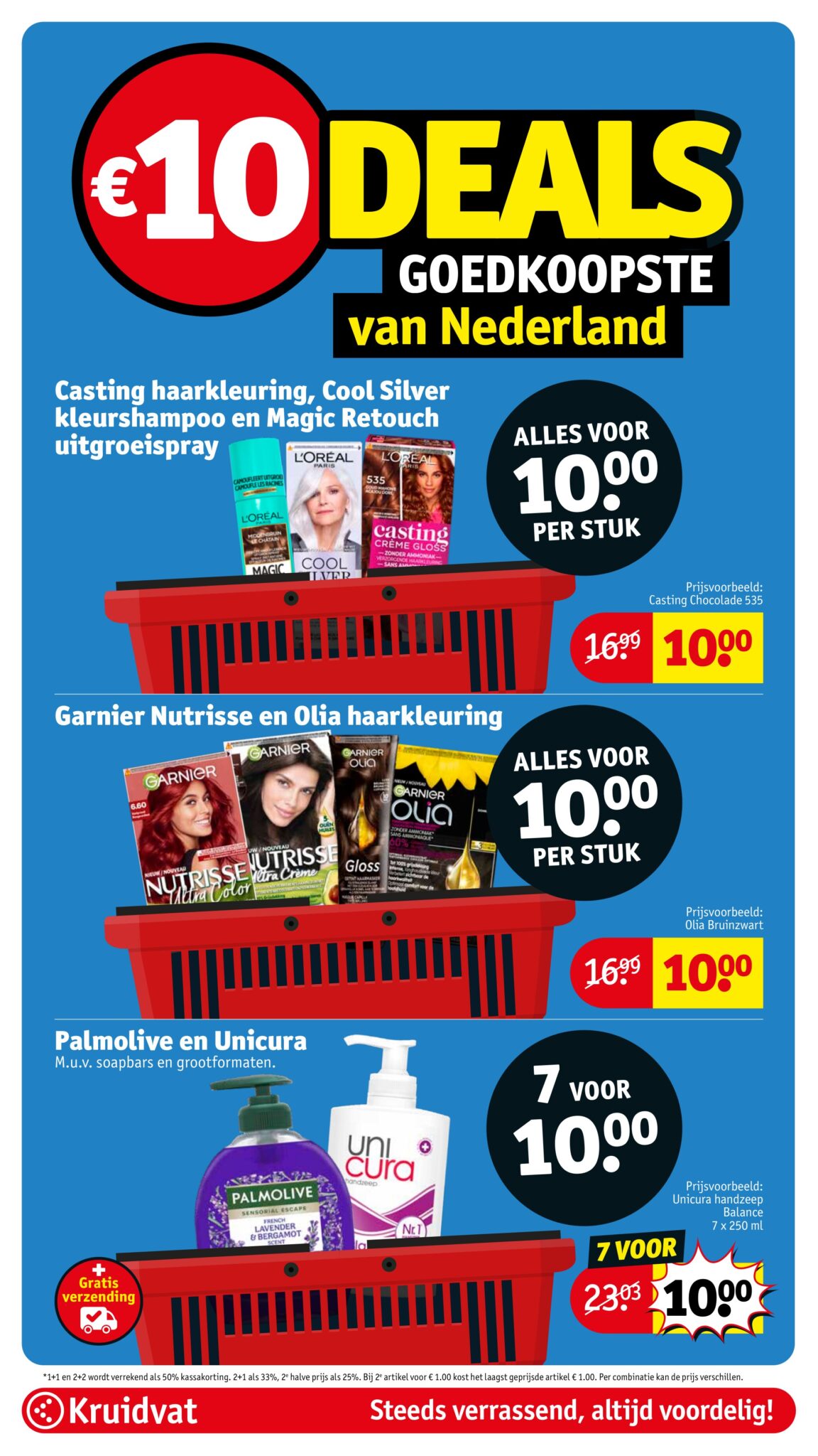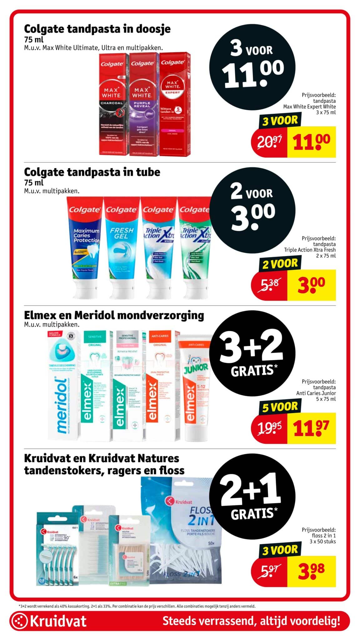 Kruidvat actuele folder geldig van 21.04 tot en met 26.04.2026. Bekijk alle acties en aanbiedingen van deze week in de online Kruidvat folder. In het Kruidvat koop je alles voor persoonlijke verzorging en schoonheid aan scherpe prijzen. Daarnaast is er ook een ruim assortiment aan andere nuttige huishoudproducten en entertainment zoals goedkope boeken en dvd’s. Bestel voor acht uur ‘s avonds en ontvang je bestelling de volgende dag.